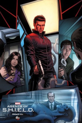 На следующем арте представлены главные события третьего сезона: Фитц вытаскивает Симмонс с планеты Мавэс, а Фил Колсон наконец убивает Гранта Уорда, доставлявшего команде проблемы на протяжении нескольких сезонов. Однако именно в Уорда впоследствии вселяется еще большее зло, зовущее себя Ульем. Его истинное обличье иллюстраторы поместили рядом с членами команды и вновь прибывшими: Йо-Йо, Линкольном и Джоуи Гуттьерезом. И, конечно же, не обошлось без Бобби и Хантера. Никто не забудет эпизод "Прощальный залп", где этой парочке пришлось попрощаться с организацией из-за того положения, в котором они оказались.