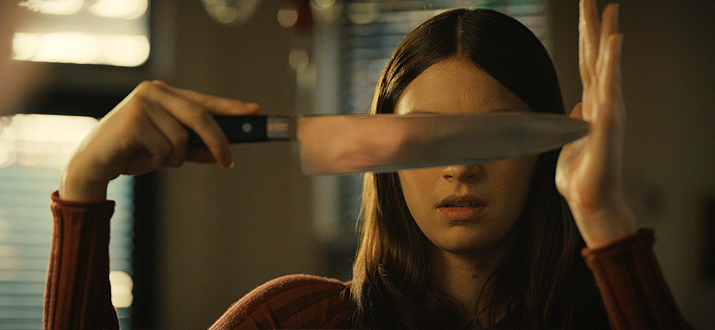 селфи для соцсетей. большинство клуш айфонами морды закрывают, а эта креативная ножом )