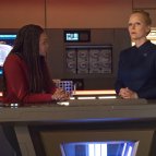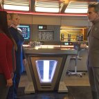 Первого офицера срочно вызывают на мостик, но Сару продолжает болтать и потом уходит пешком, а не телепортируется...