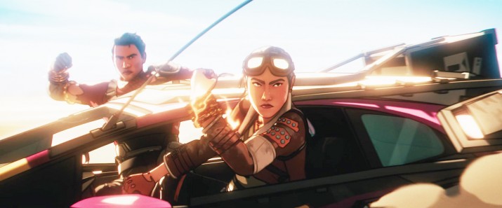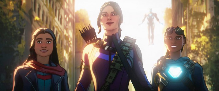 Во-вторых, формат анимации позволяет глубже погрузиться в характеры персонажей и очень интересно обыгрывать их взаимодействие друг с другом. Например, такие герои, как Шан-Чи, Кэти и Джимми Ву становятся налетчиками в стиле Безумного Макса в постапокалиптической пустыне. Не говоря уже о Блэйде, чья судьба в MCU вызывает вопросики, а здесь этот персонаж получает достойное переосмысление. Даже по мере развития сюжета и, как следствие, увеличения числа погибших, сценаристы продолжают лихо выкручиваться, создавая новые, все более безумные связи между героями. Особенно впечатляющей является крепнущая связь Камалы и Красного стража, своей душевностью и искренностью способная разбить не одно сердце.